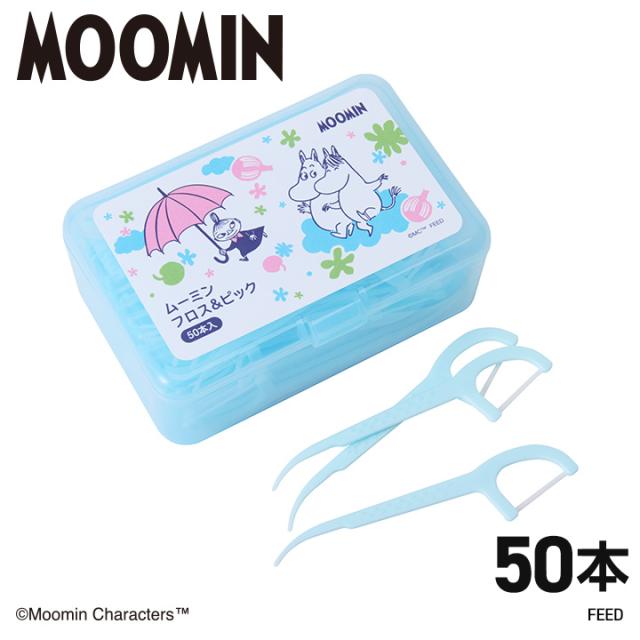 ムーミン フロス&ピック 50本 ノンワックス ハンドル付きフロス 歯科専売品