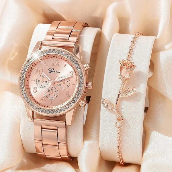 ? ラインストーン-ちりばめられたデザイン :時計、指輪、ネックレス、イヤリングはきらめくラインストーンで飾られており、どんな服にも魅力を加えています。