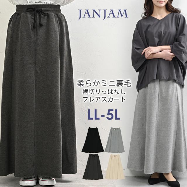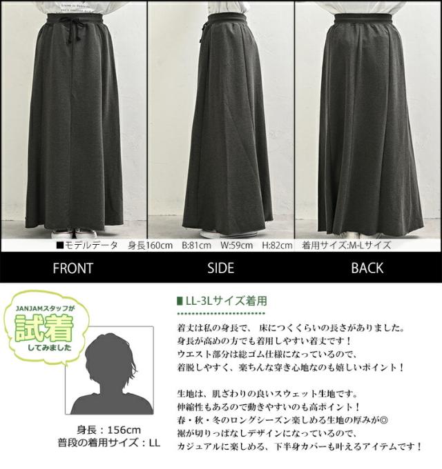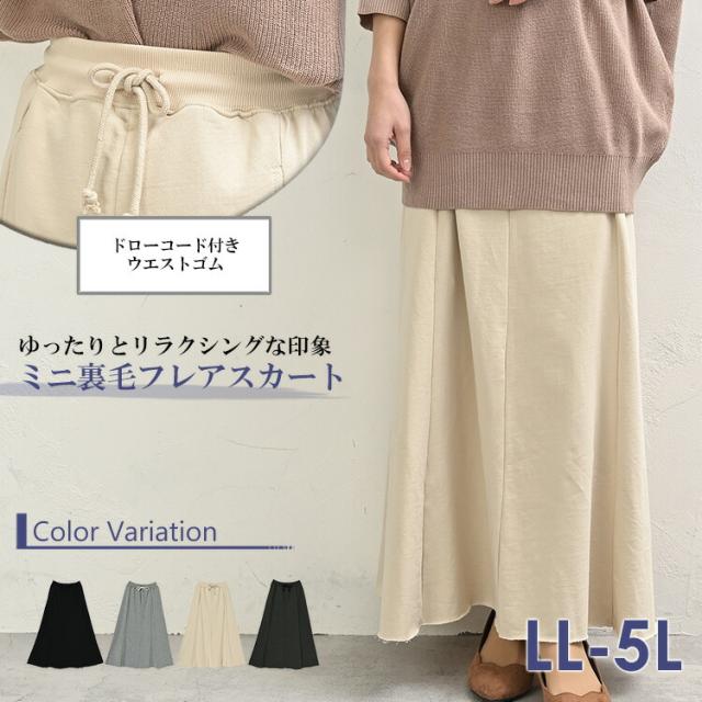 送料無料※沖縄/北海道対象外 大きいサイズ レディース フレアスカート ロング丈 ウエストゴム ミニ裏毛 裾切りっぱなし ボトムス SWT LL-3L/4L-5L ゆったりサイズ ぽっちゃり女子 プラスサイズ