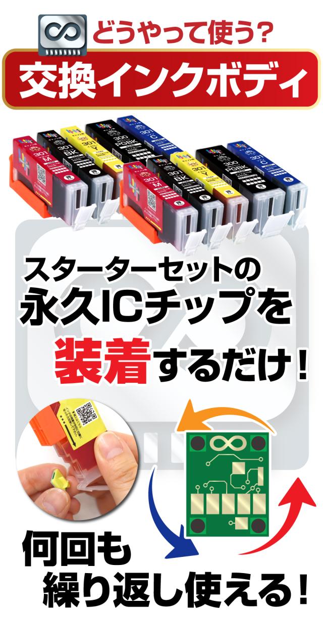 商品の特性:繰り返し使える永久ICチップ専用の交換用インクボディです。 別途、永久ICチップ付きスターターセットが必要になります。 本製品だけでは、ご使用になれませんので予めご了承ください。