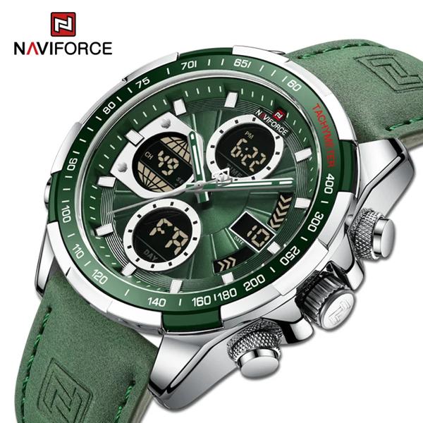 Naviforce-メンズミリタリーウォッチ,オリジナルスポーツクロノグラフ,耐水性,デジタルディスプレイ,クォーツ時計