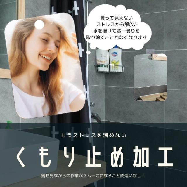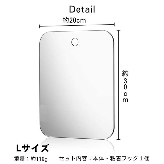 浴室 お風呂 鏡 Lサイズ 風呂 割れない鏡 バスミラー お風呂ミラー バス ミラー 洗面所 くもらないミラー 曇らない鏡 ウォールミラー 吸盤 フック付き くもり止め 壁掛け 吊り下げ 軽量 曇り止め
