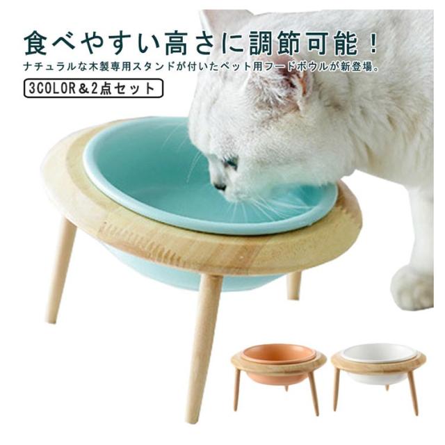 フードボウル 犬用 猫用 食器台 UFO 木製 2点セット(棚*1+ボウル*1) 高さ調整 陶器 高さがある フードボール フードスタンド フードボウルスタンド 犬の餌台 キャットフード入れ 食器スタンド 犬用食器 猫用食器 ペット用 おしゃれ