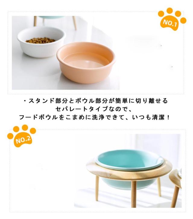 | ・食べやすい高さに調節可能!ナチュラルな木製専用スタンドが付いたペット用フードボウルが新登場。 ・前かがみの姿勢でフードを食べているワンちゃん・ネコちゃんの負担を軽減! 長さの違う2種類の脚で、食べやすい高さに調節できちゃう♪ ・長い脚と短い脚を組合わせて、スタンドを斜めに傾けてセッティングしてもOK! ・フードボウルは、ペットフードがこぼれにくい適度な深さに設計。 どっしりと重みのある陶器製だから、器をひっくり返してしまう心配がないのが嬉しいポイント! ・スタンド部分とボウル部分が簡単に切り離せるセパレートタイプなので、フードボウルをこまめに洗浄できて、いつも清潔! | |