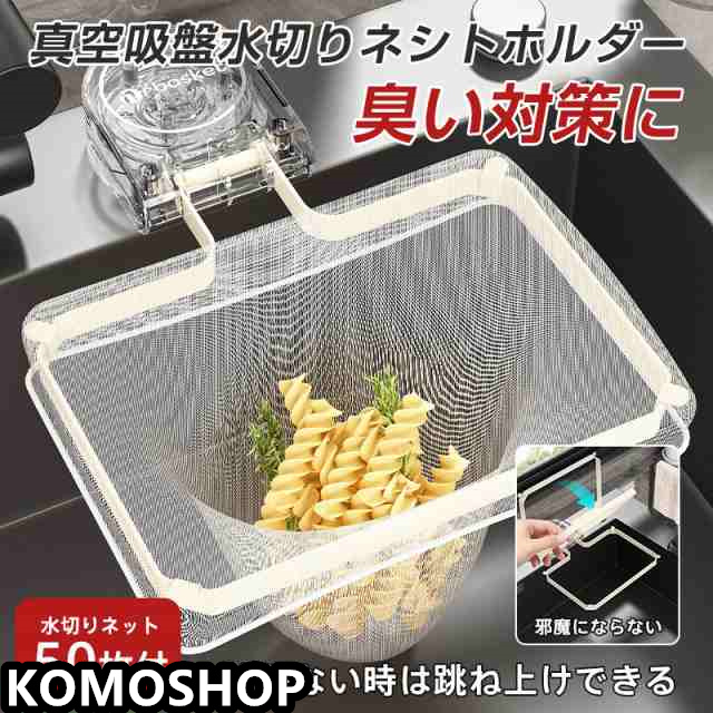 水切りネットホルダー 生ゴミホルダー 強力吸盤 貼り直し可能 水切りネット付き 使い捨て 三角コーナー いらず 水切り ラック 清潔 折り畳み 省スペース 浮かせる 生ゴミ受け入れ 生ゴミ処理 キッチン 三角コーナー 匂い対策 シンク 排水溝 ゴミ受け おしゃれ 便利グッズ ふきん掛けハンガー