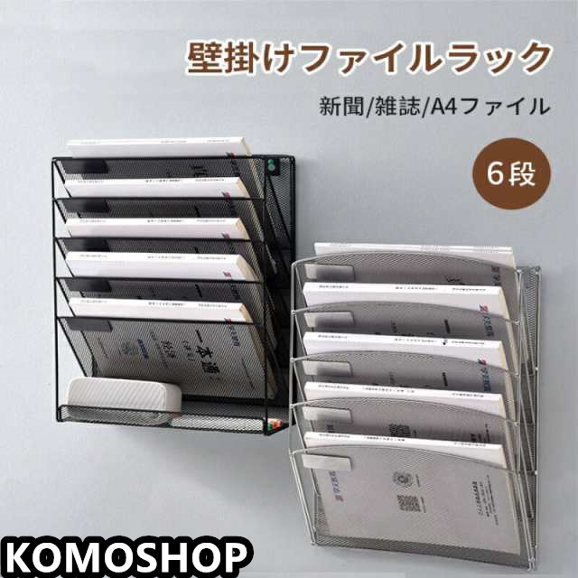 卓上収納ラック 壁掛け ファイルラック 6段 収納ラック 書類トレー 金属メッシュ 壁掛け書類ラック 多機能 新聞 雑誌 書類入れ 収納 ブラック 文房具 事務用品