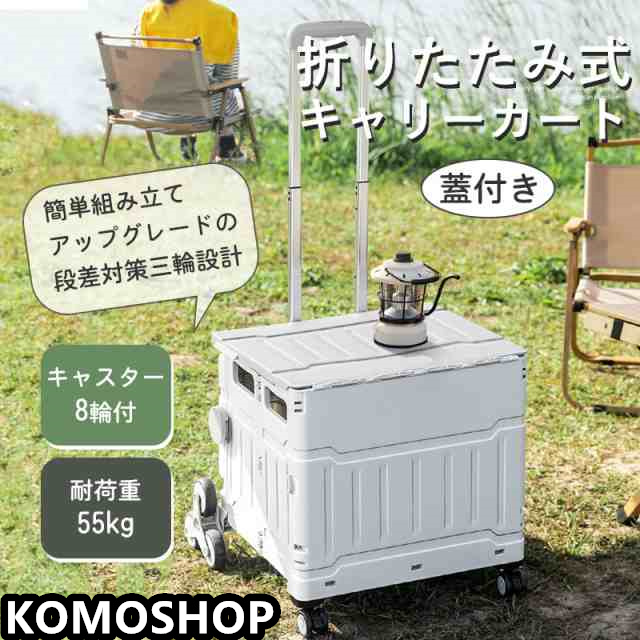 キャリーカート 折りたたみ コンパクト キャスター付き 8輪 360度回転 フタ付き 簡単組み立て アウトドア ショッピングカート