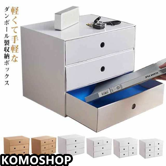 卓上 引き出し 引き出し収納ケース ダンボール 段ボール 3段 小物収納 クラフトボックス 縦置き 収納ボックス 引き出し型 簡単組み立て