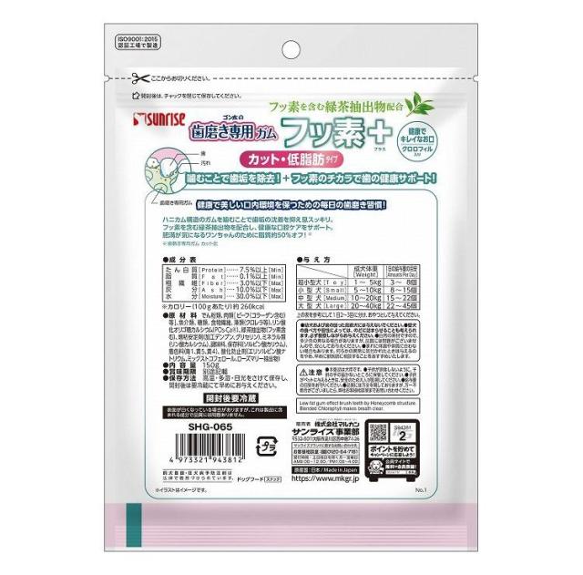 マルカン サンライズ ゴン太の歯磨き専用ガム フッ素プラス カット クロロフィル入り 低脂肪 150g