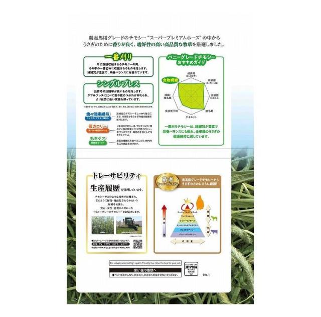 競走馬用グレードのチモシー”スーパープレミアムホース”の中からうさぎのために香りが良く、嗜好性の高い高品質な牧草を厳選しました。