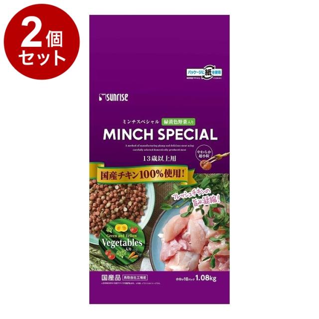 【2個セット】 マルカン サンライズ ミンチスペシャル 小型犬 13歳以上 緑黄色野菜入り 1.08kg【送料無料】