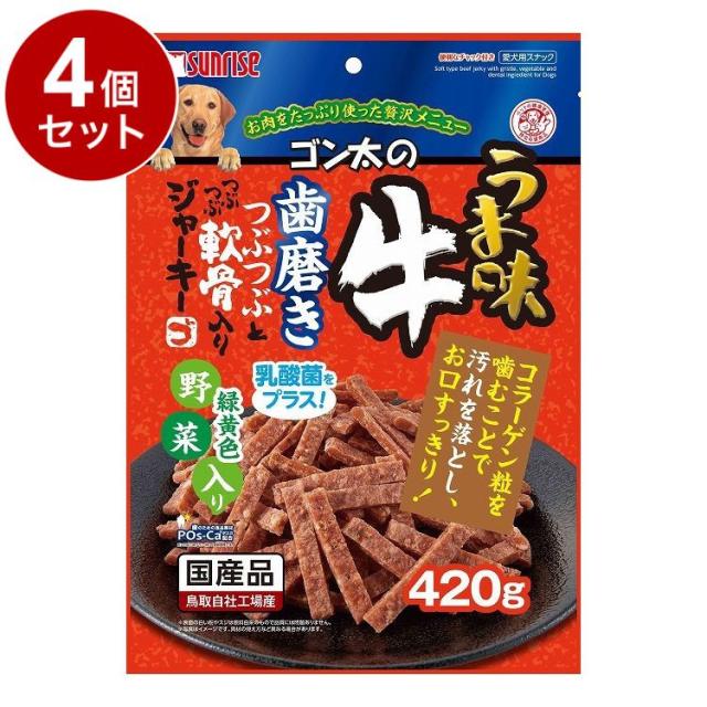 【4個セット】 マルカン サンライズ ゴン太のうま味牛 歯磨きつぶつぶとつぶつぶ軟骨入りジャーキー 緑黄色野菜入り 420g【送料無料】