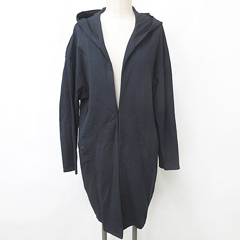 【中古】インディヴィ INDIVI カットソー カーディガン ロング丈 長袖 フード カギホック 紺 ネイビー 38 レディース