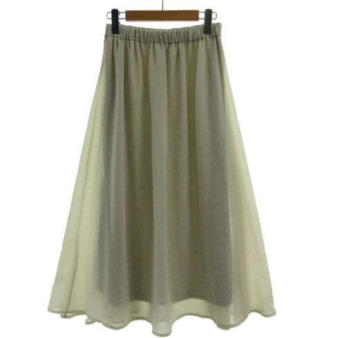 【中古】コムサマチュア Comme ca Mature スカート ギャザー フレア シアー素材 ロング ウエストゴム グレージュ系 F