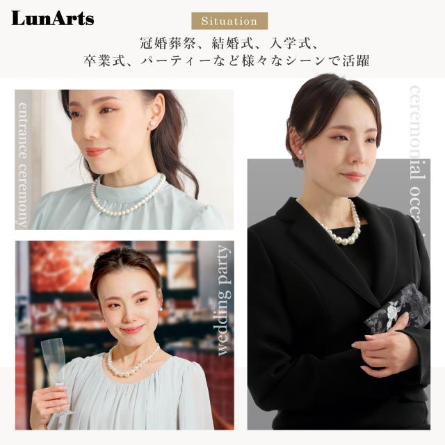 [LunArts] パールネックレス 2連 (ピアス) セット 8mm 真珠 冠婚葬祭 結婚式 真珠ネックレス 公式宝珠