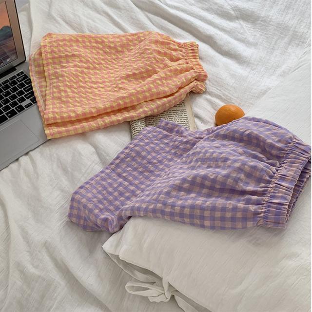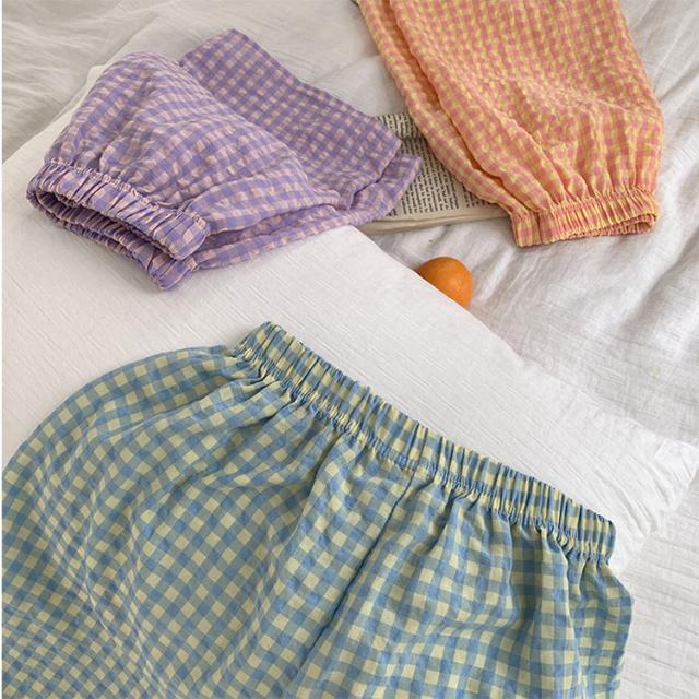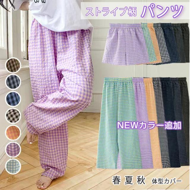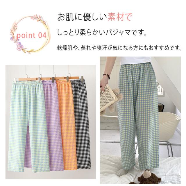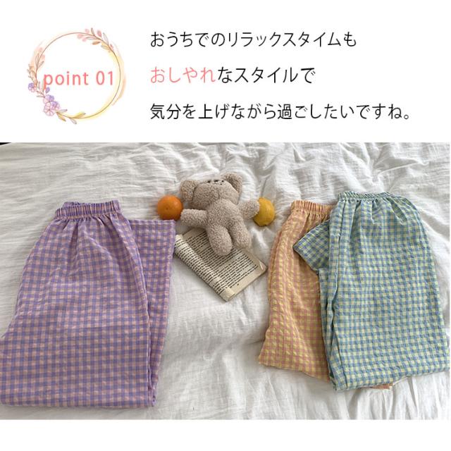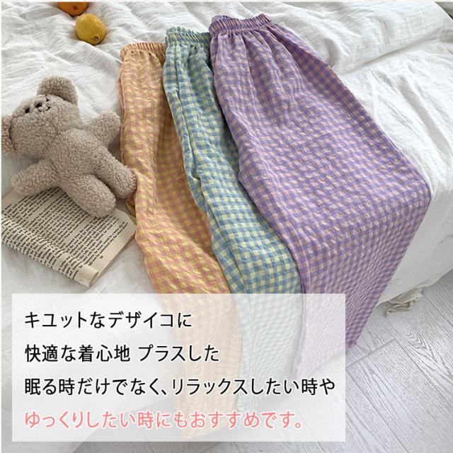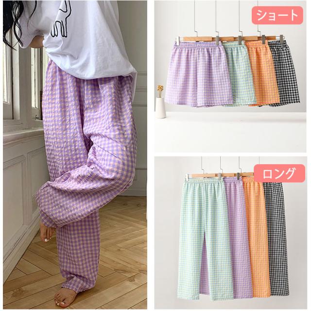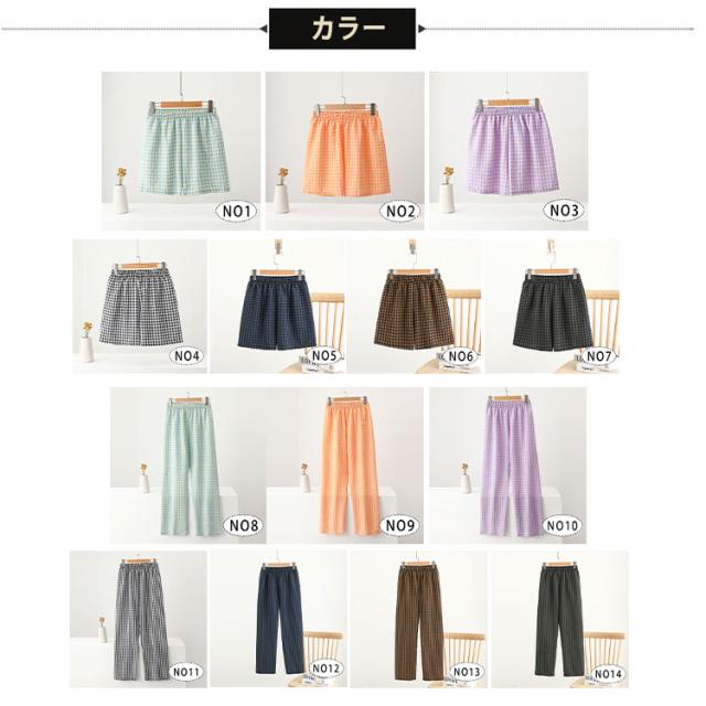 パンツ ルームウェア レディース 夏 かわいい ズボン ギンガムチェック リラックスパンツ イージーパンツ ロングパンツ ショートパンツ 涼しい ゆったり ウエストゴム 体型カバー 部屋着 パジャマ ルームパンツ 柄パンツ 軽量 さらさら 快適