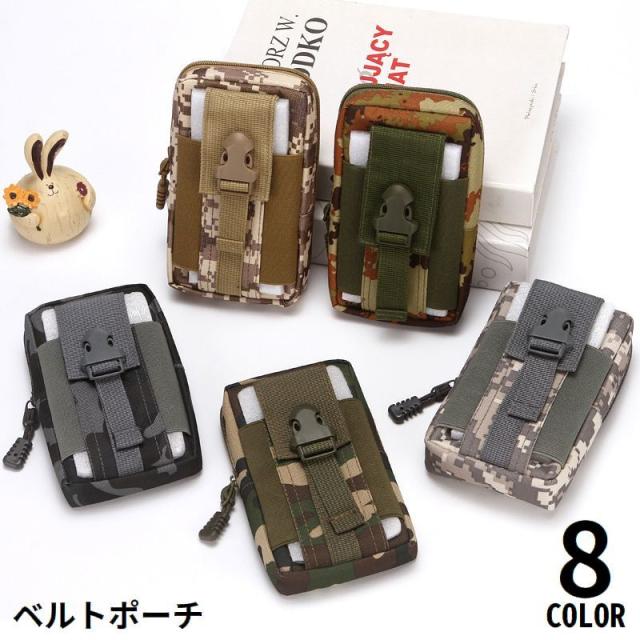 ベルトポーチ ミリタリーポーチ スマホポーチ ウエストポーチ ミニバッグ 男女兼用 大容量 カモフラ 迷彩柄 無地 サバゲー