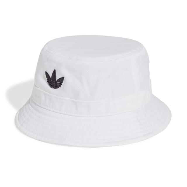 スタイリングの決め手になる、アディダスのバケットハットが登場。クラウンの周りにコットンバンドをあしらい、日差しから目を守るつばにはあらかじめカーブを付けてある、コットンツイルのハット。小さなトレフォイル刺しゅうがアクセント。