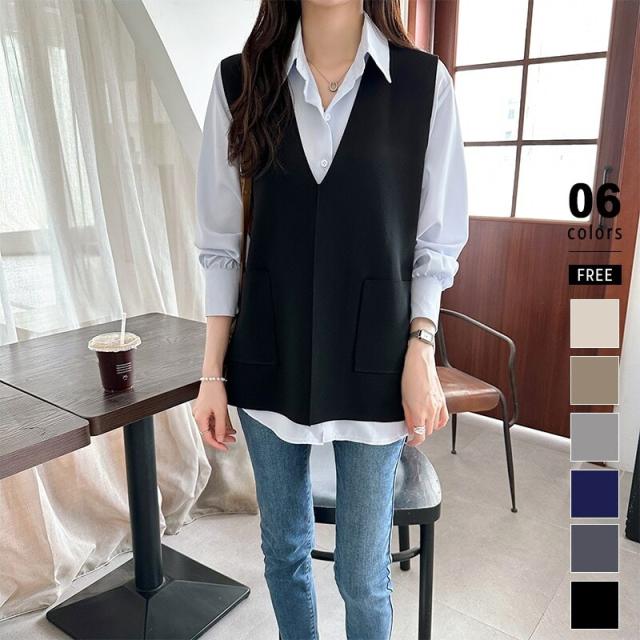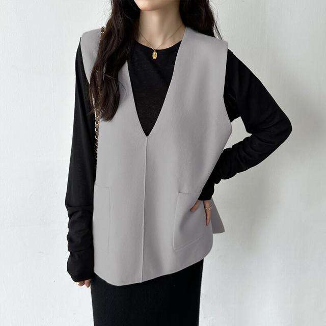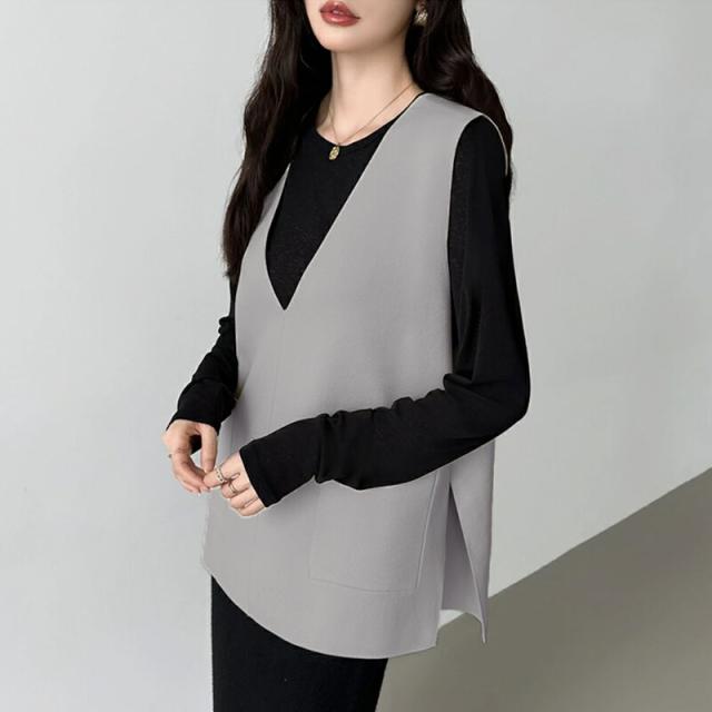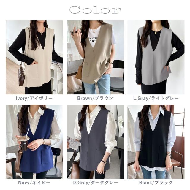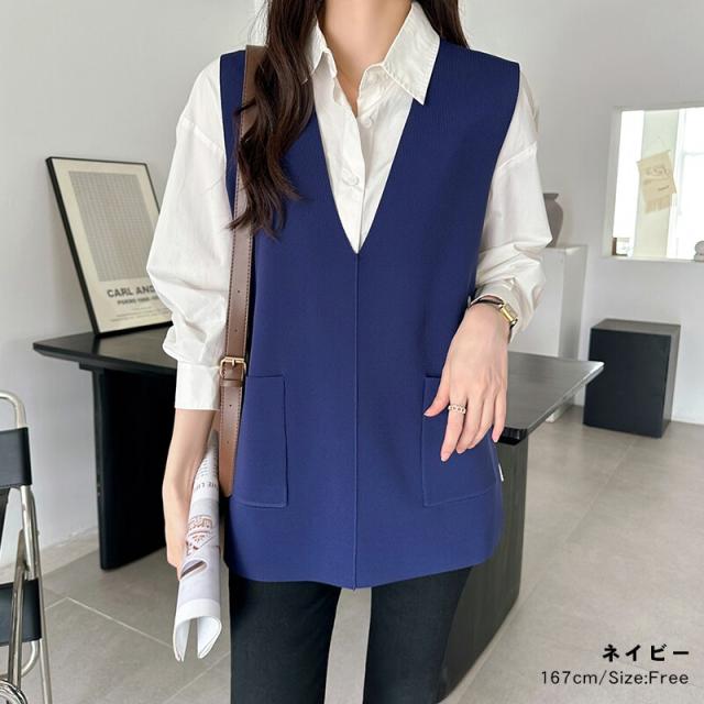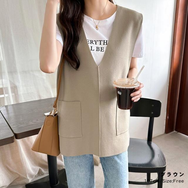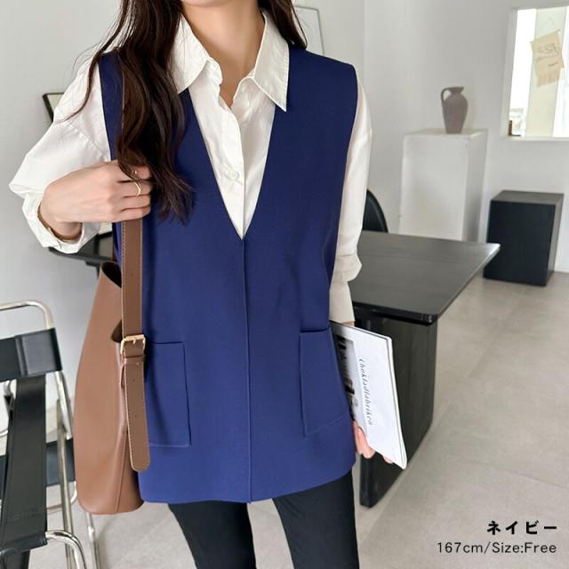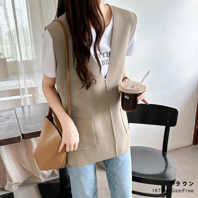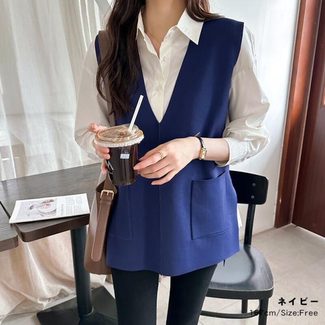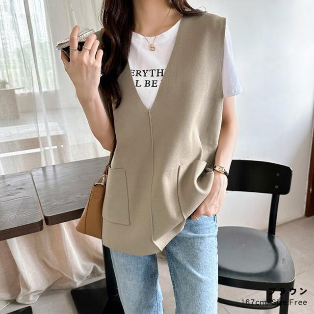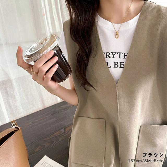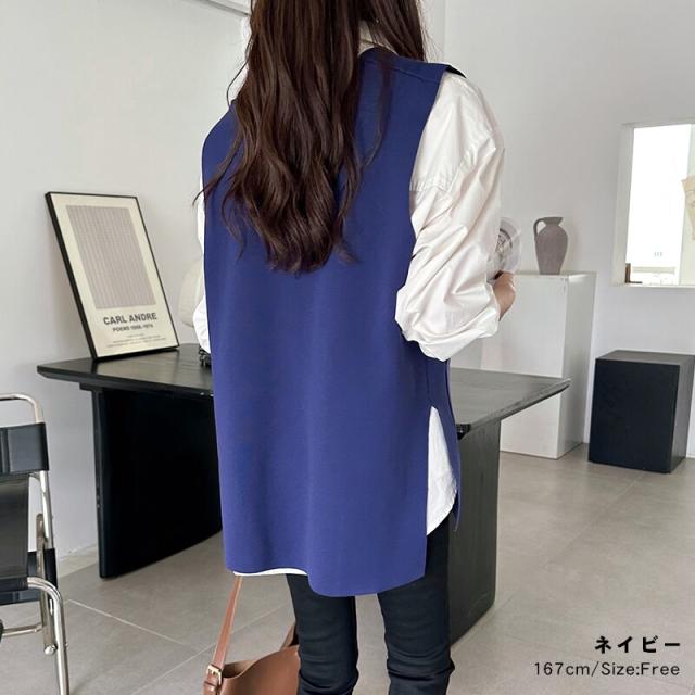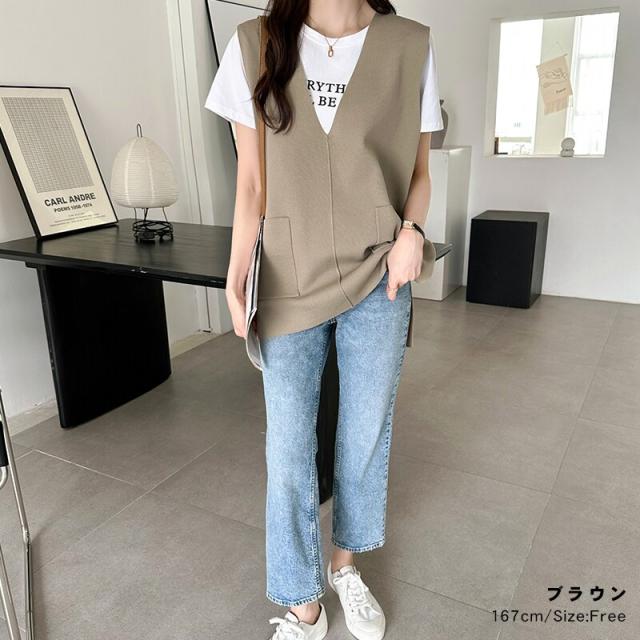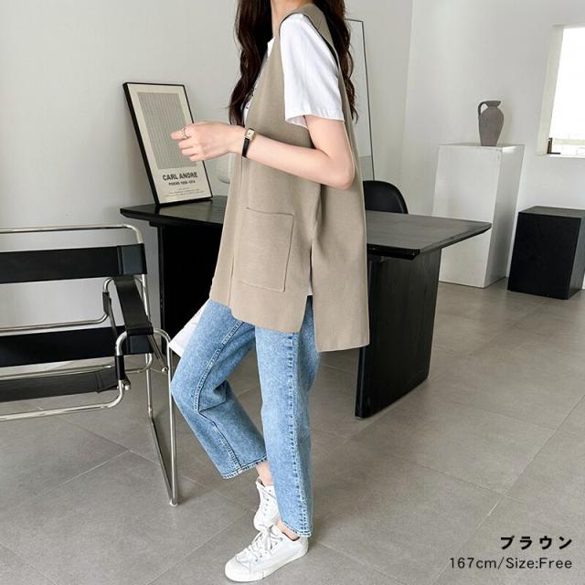 サイドスリット入り Vネックベスト ニットベスト レディース おしゃれ Vネック ジレ ニット