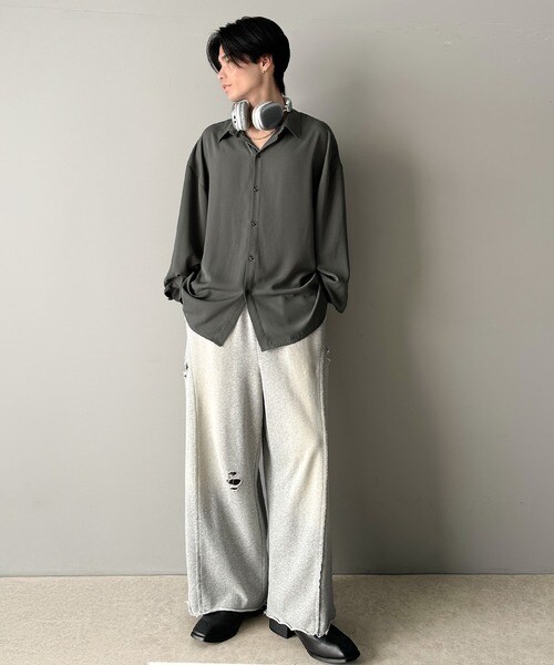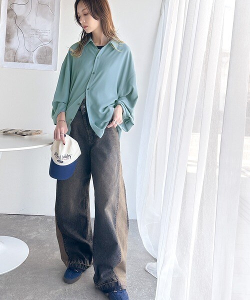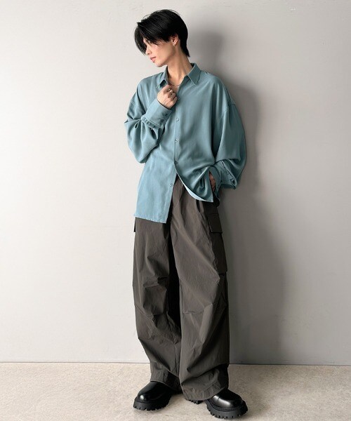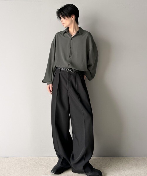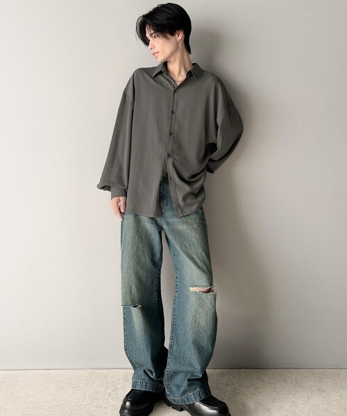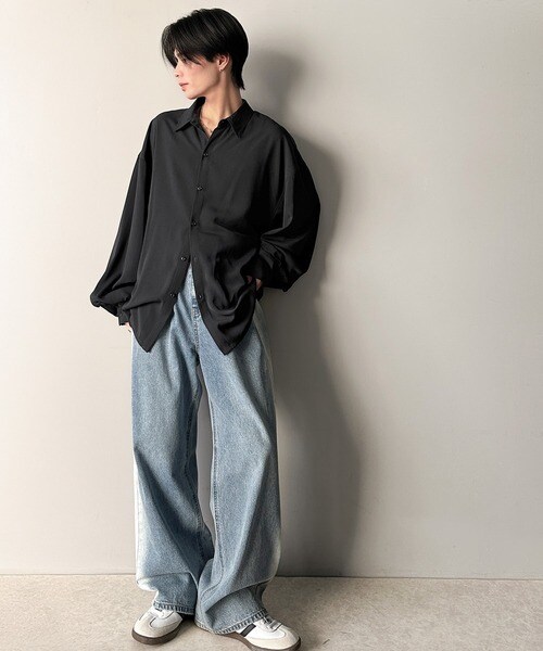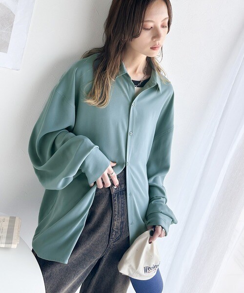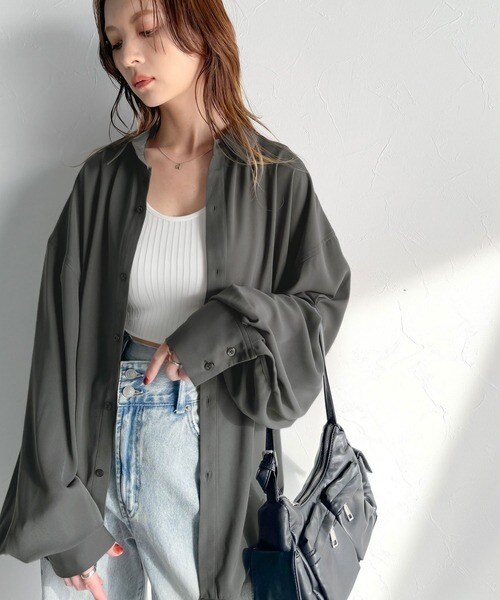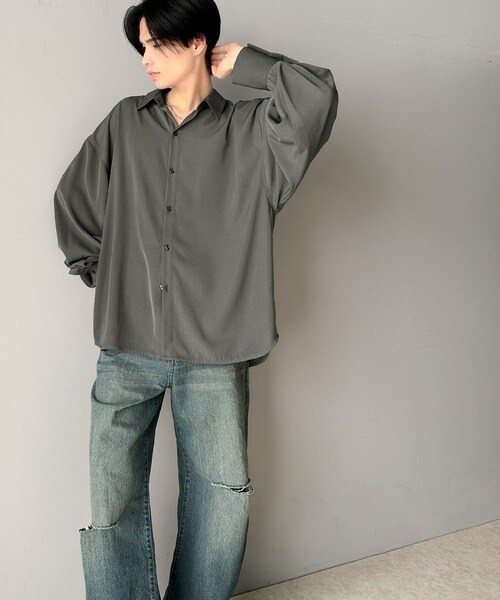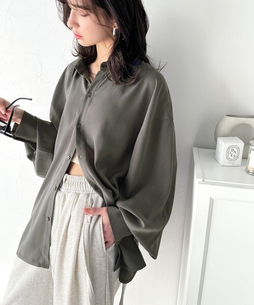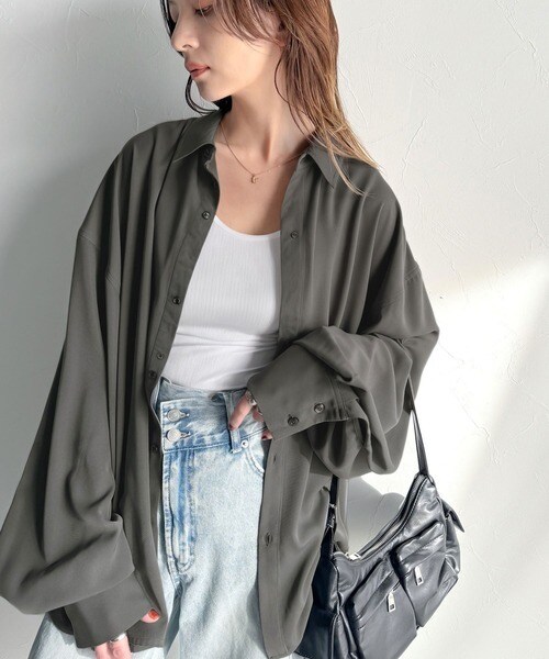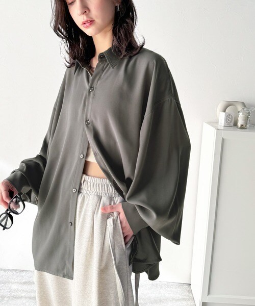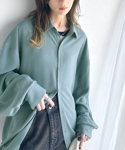 上質なとろみ素材。オーバーサイズシャツ(長袖)