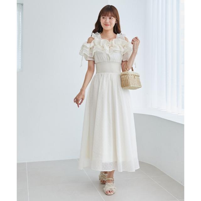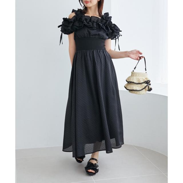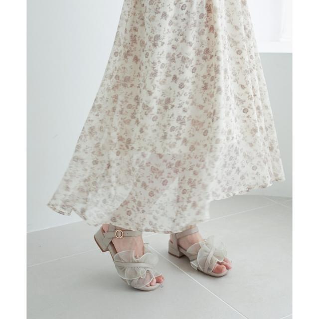 プリーツ仕立てのボリュームフリルで足元を華やかに彩るサンダル。