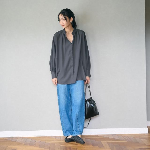 1枚できれいにまとめてくれるアイテムなので、デニムでカジュアルにもスカートでフェミニンにも着こなせます。