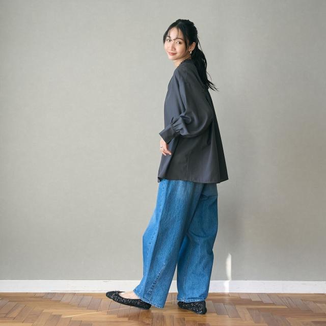 身幅や肩回りにゆとりをもたせ、お袖はカフスを施しているのでメリハリのある着用感です。