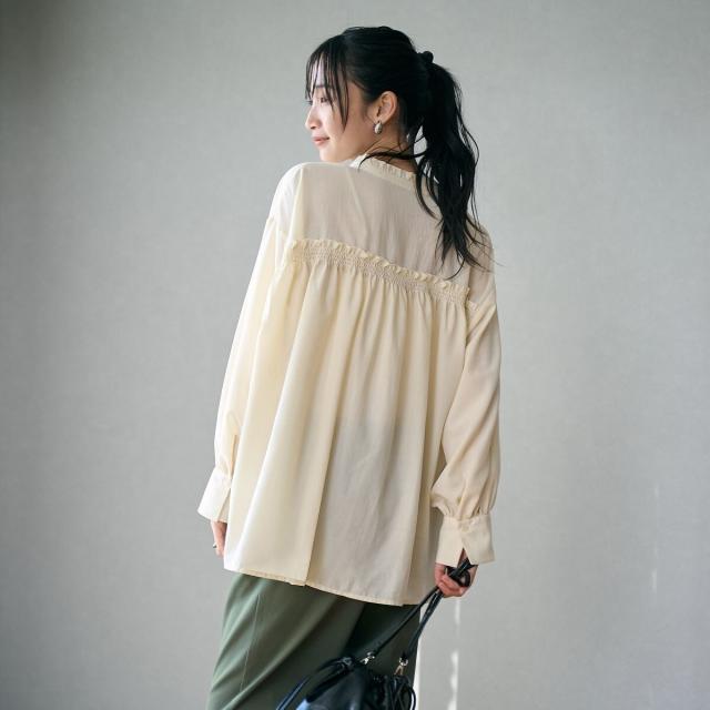 ポリエステル ボイル バックシャーリング スキッパー ブラウス