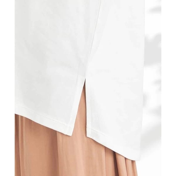 ・前後差のある裾でトップスアウトもサマになる着こなしに◎