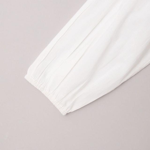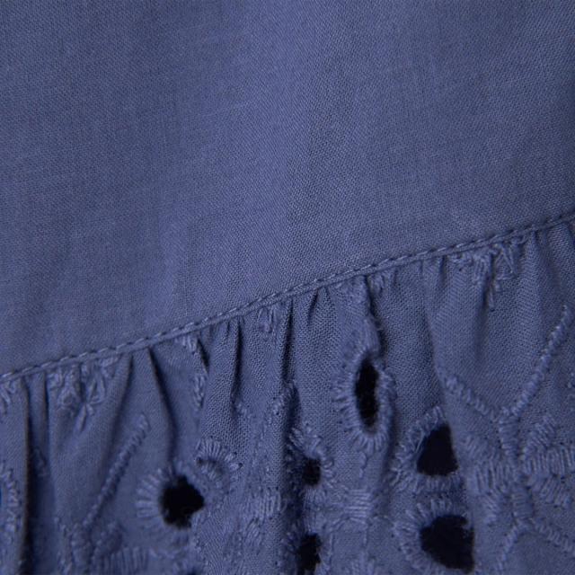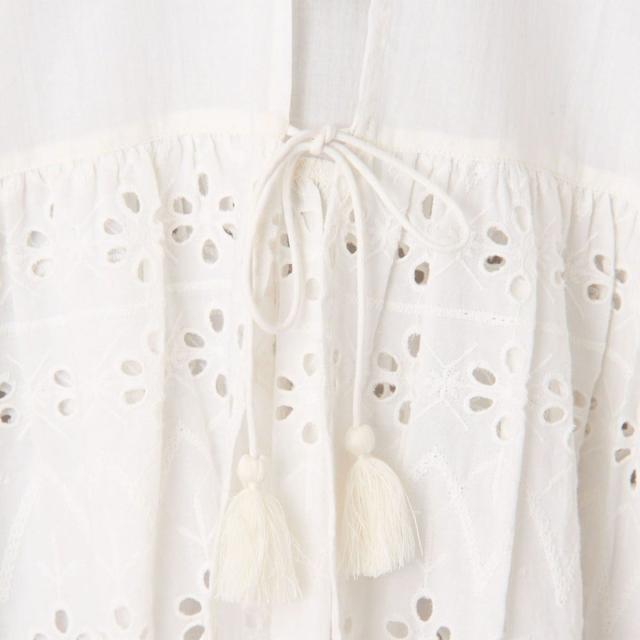 ウエストから下はコットン刺繍のシフリレースを使用して華やかな印象に◎
