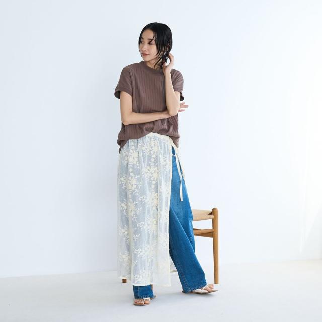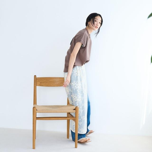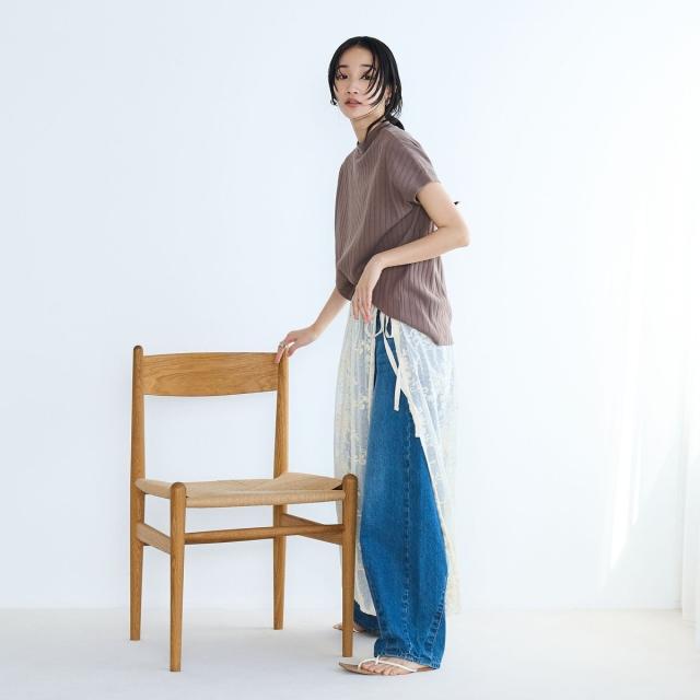 ワイドリブが入っており、すっきりと縦のラインを強調。