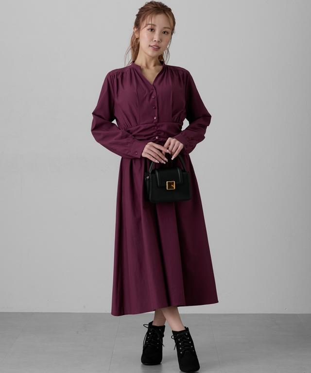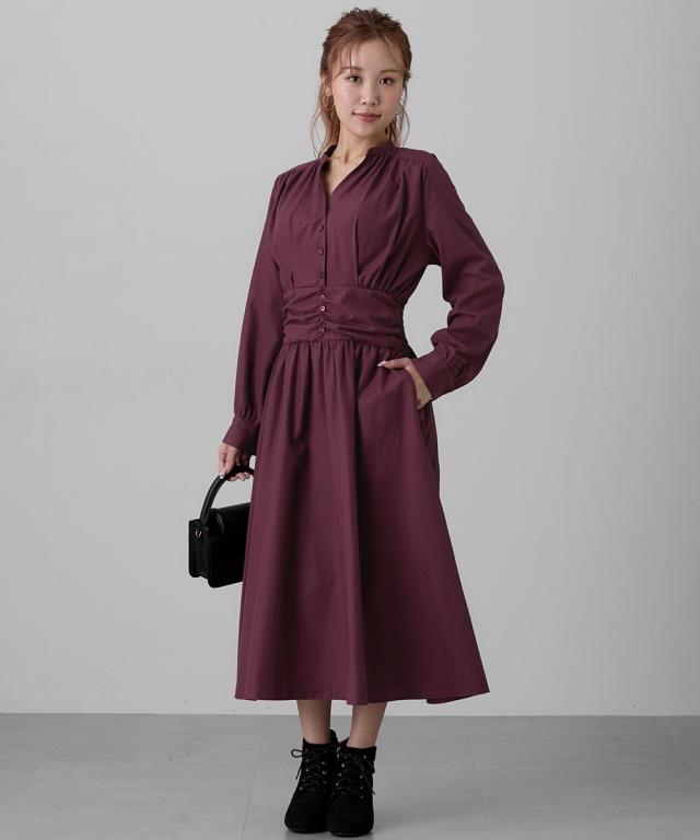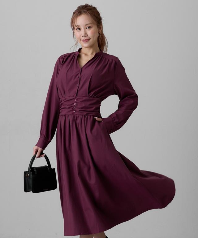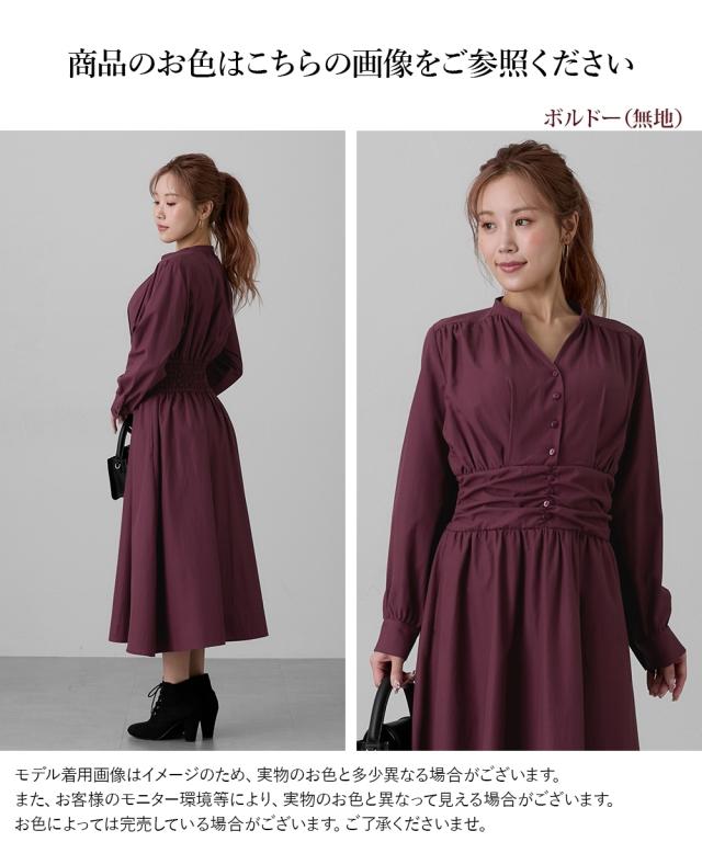 品質=ストライプ:ポリエステル60%・綿40% ボルドー:綿55%・ポリエステル45% ワンピース:前ボタン開 ワンピース:ファスナー無 ポケット両脇 原産国:中国製 備考:洗濯機OK ネット使用