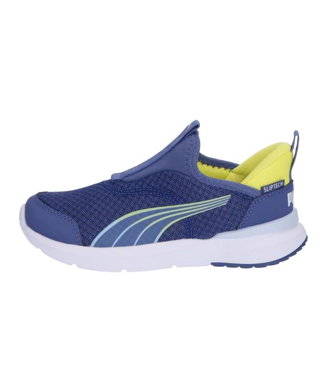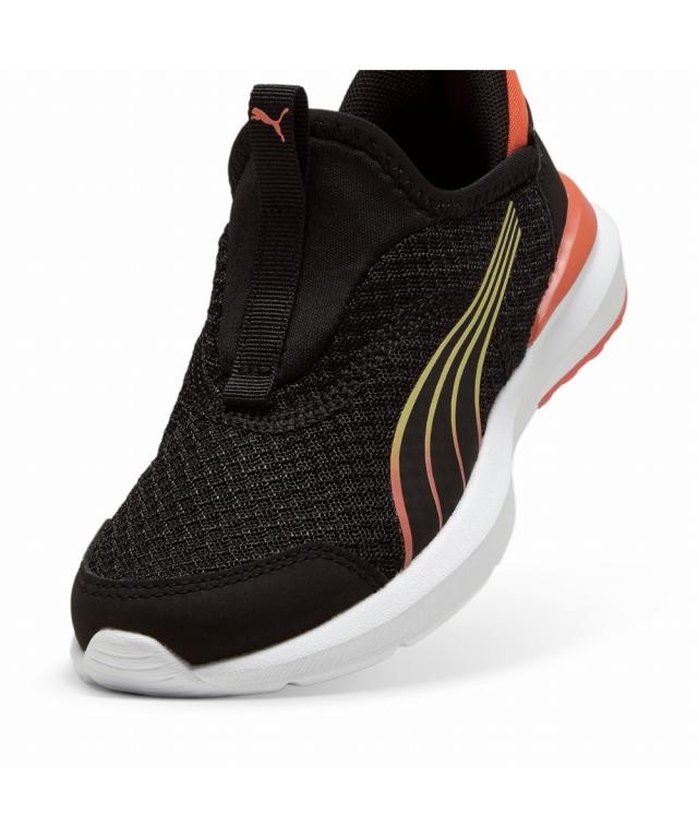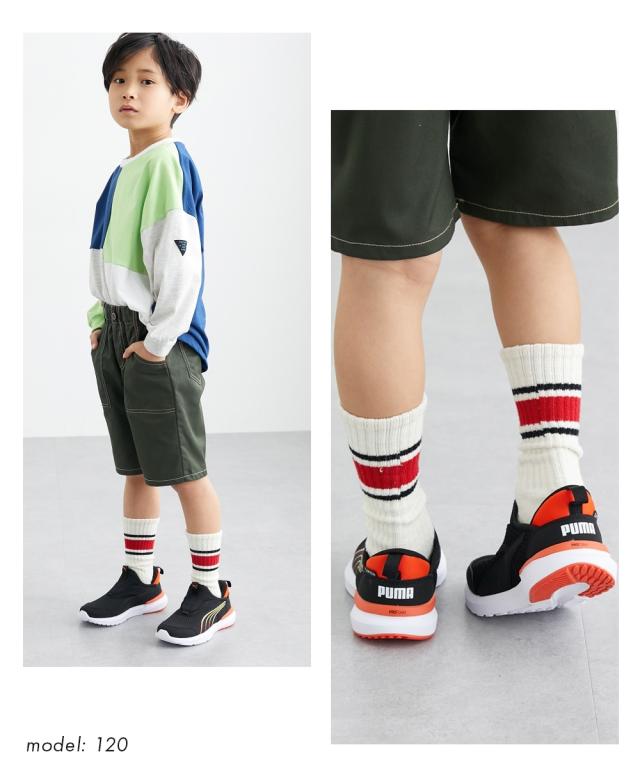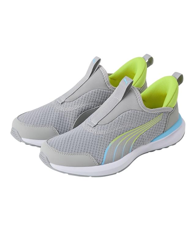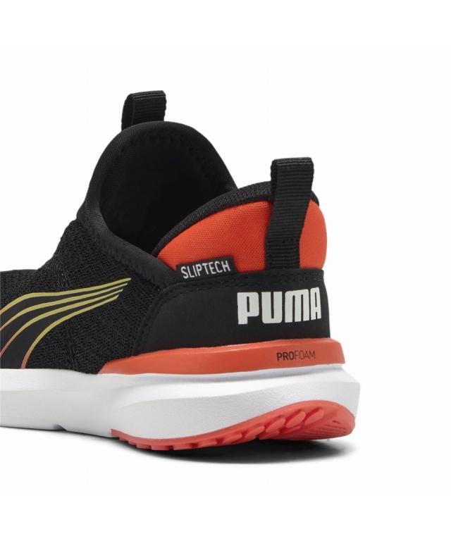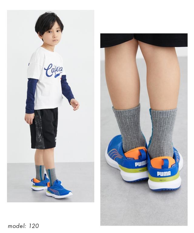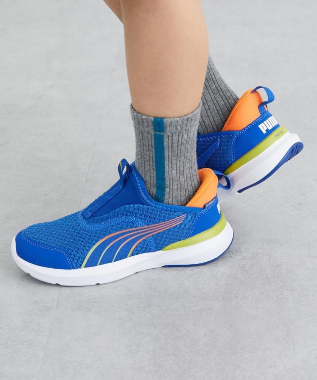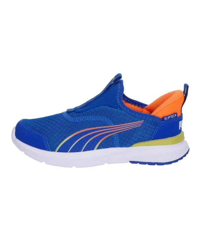 キッズスニーカーの中でも プーマらしいパフォーマンスニーズに特化したデザインを投入☆ ■デザイン ・プーマの新しいSLIPTECHテクノロジーにより手を使わずにシューズを脱ぎ履きできます ・ユニークなステップインスタイルを演出 ・アッパーはスリップオン仕様で耐久性と足運びをサポートするトラクションが特徴 ・ミッドソールにはProFoamと耐久性のあるラバーポッドがどんな路面でもトラクションを発揮 ・伸縮性のあるネオプレンとウェビングが元気に動き回るお子様の足にぴったりフィット ・かかとに施されたSLIPTECH(TM)テクノロジーにより手を使わずにシューズの着脱が可能 ■素材 ・クッション性の高い軽量なEVA素材 ・通気性の高いメッシュアッパー ・SOFTFOAM: ソフトなクッショニングを提供するインソール ・アッパーに伸縮性のあるネオプレーン素材を使用し快適なフィット感を実現 ・EVAミッドソール・トラクションを高めるヒールのラバーポッド