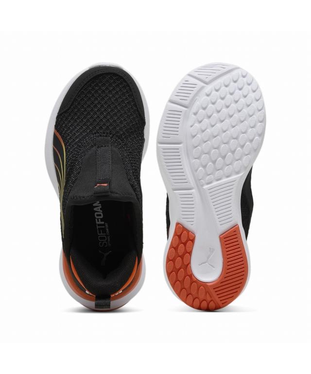 キッズスニーカーの中でも プーマらしいパフォーマンスニーズに特化したデザインを投入☆ ■デザイン ・プーマの新しいSLIPTECHテクノロジーにより手を使わずにシューズを脱ぎ履きできます ・ユニークなステップインスタイルを演出 ・アッパーはスリップオン仕様で耐久性と足運びをサポートするトラクションが特徴 ・ミッドソールにはProFoamと耐久性のあるラバーポッドがどんな路面でもトラクションを発揮 ・伸縮性のあるネオプレンとウェビングが元気に動き回るお子様の足にぴったりフィット ・かかとに施されたSLIPTECH(TM)テクノロジーにより手を使わずにシューズの着脱が可能 ■素材 ・クッション性の高い軽量なEVA素材 ・通気性の高いメッシュアッパー ・SOFTFOAM: ソフトなクッショニングを提供するインソール ・アッパーに伸縮性のあるネオプレーン素材を使用し快適なフィット感を実現 ・EVAミッドソール・トラクションを高めるヒールのラバーポッド
