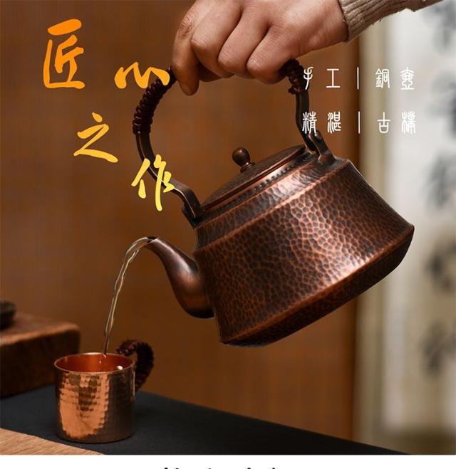 銅瓶 ケトル 1000ml 湯沸 煎茶道具 銅之薬缶 使いやすい容量 ポット 槌目 急須 水注し 水差 水指 銅 ティーポット 水次 ヤカン 湯沸かし ハンドメイド 手打ち 純銅 健康 茶道具 手作り キッチン アクセサリー ギフト プレゼント