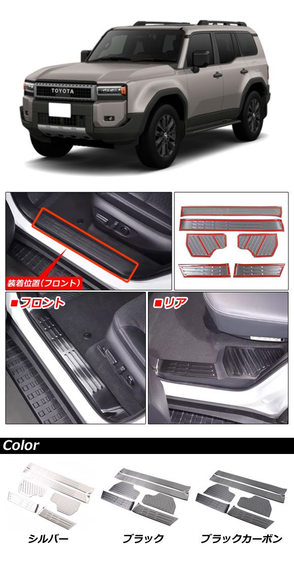 スカッフプレート トヨタ ランドクルーザー250 250系 2024年04月〜 ブラック ステンレス製 入数:1セット(6個) AP-SG390-BK