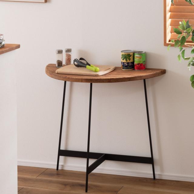 コンソールテーブル 半円型 高さ72cm 古材 ( 天然木 パイン材 ビンテージ調 アイアン 異素材 壁付け 壁寄せ テーブル 省スペース サイドテーブル 玄関 リビング ディスプレイ台 ミニテーブル ソファ ベッド 横 )