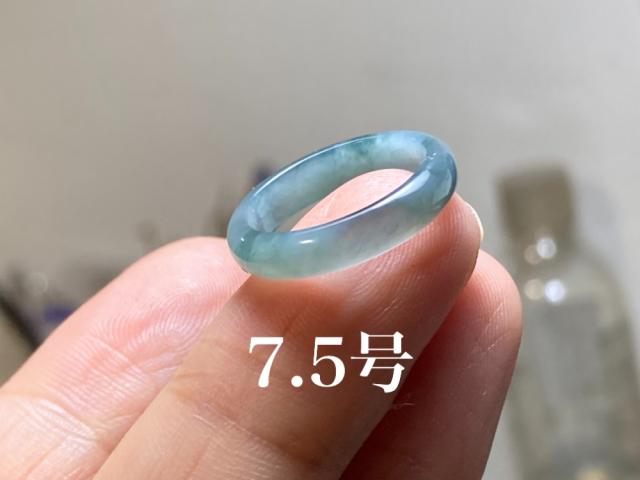 L10-197 青灰色 ピンキーリング 7.5号 天然グアテマラ産 A貨 本翡翠 くりぬき リング