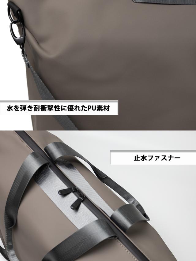 水を弾き耐衝撃性に優れたPU素材に止水ファスナーを合わせた大容量のトートバッグです。ゴムのように柔らかく弾力のある材質でデイリーはもちろん、砂が気になる浜辺やアウトドア、スポーツシーンなどの使用にもお勧めです。