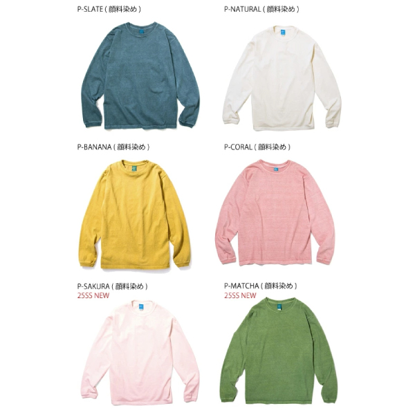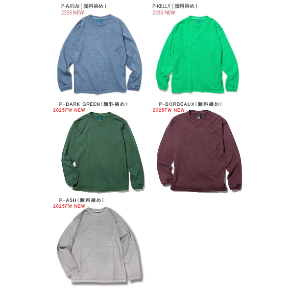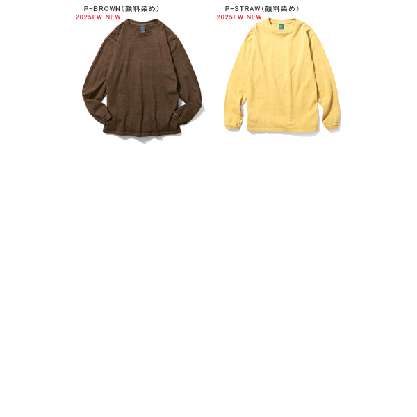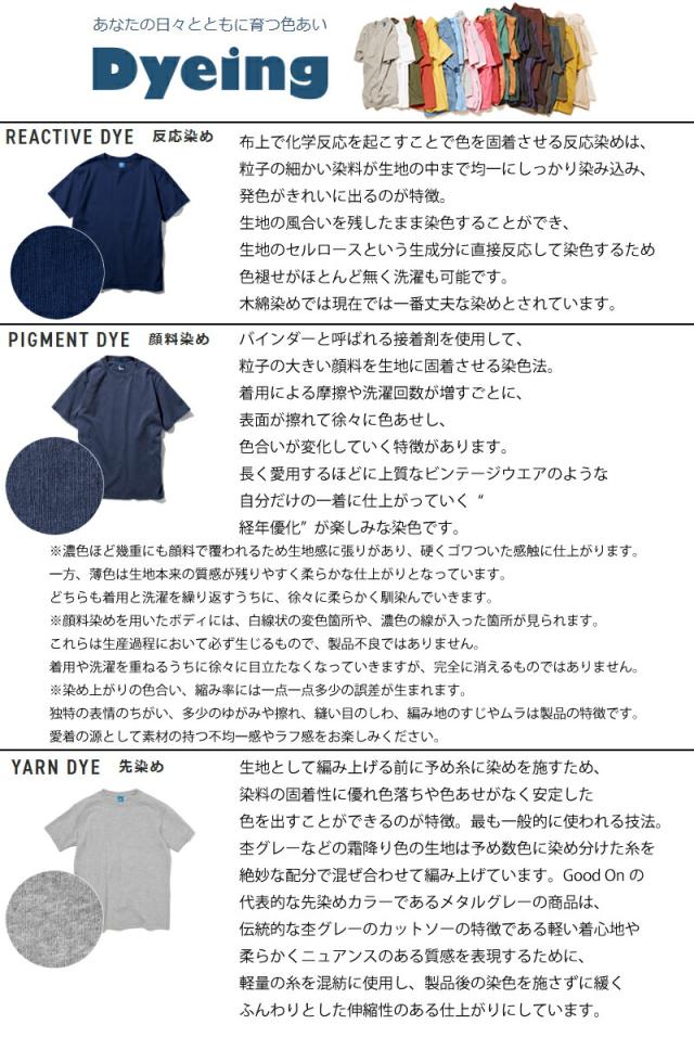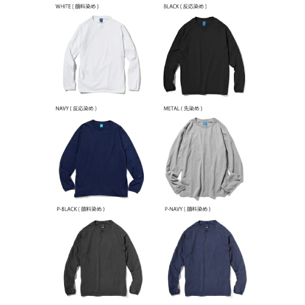 製品染め(反応染め) ※メタルグレー:先染め ・Reactive Dye(反応染め)カラーは落ち着いた雰囲気のきれいな発色が特徴で、ベーシックかつシンプルな仕上がりで着回しやすく上品な印象です。 ・Pigment Dye(顔料染め)カラーは独特な濃淡のある色合いで、風合い感と経年変化による色あせを楽しむことができます。 ・メタルグレーはクラシックなUSA Tシャツの上質な風合いと肌触りを再現した絶妙な霜降りカラー。 ※ご購入後、初めの数回は色落ちする事がありますので、単品でのお洗濯をおすすめ致します。 | ||||||