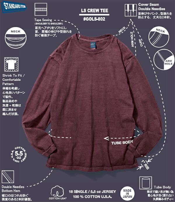 グッドオン Good On / LS Crew Tee ロングスリーブクルーTシャツ / GOLS-802 / 長袖 クルーネック Tシャツ ユニセックス アメカジ / 2025春夏 / ネコポス配送