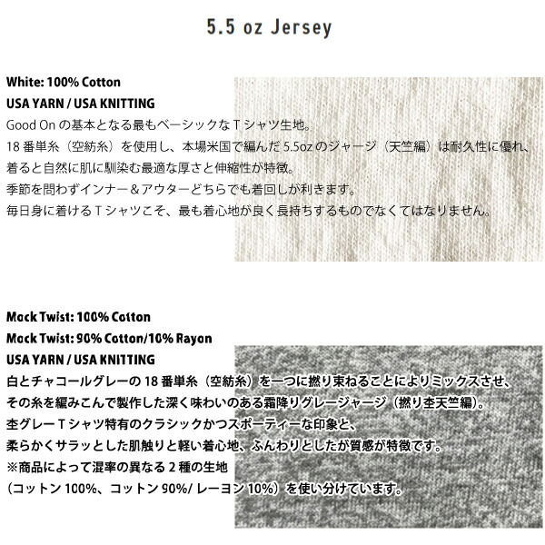 Good OnのTシャツは、快適な着心地とサイズ感で365日洗濯してもダメージのない頑固な縫製が特徴。