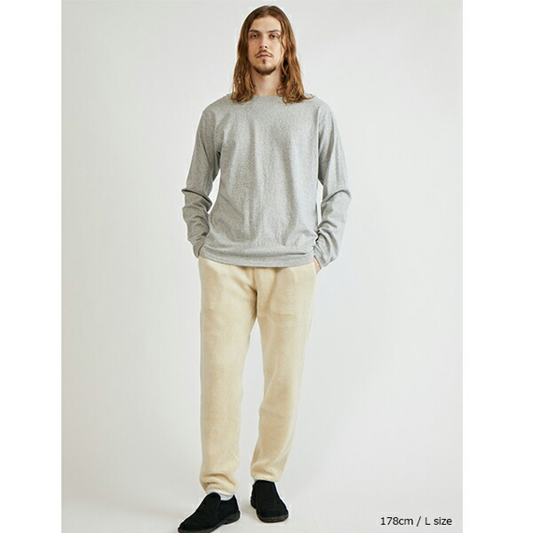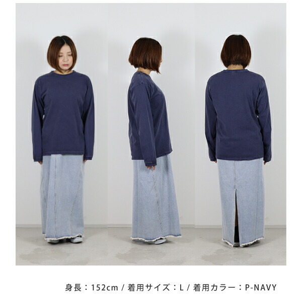 着用していくうちに詰まっている編み目が緩み、身体に馴染んでいきます。 ※製品染め商品の特性上、一点一点染め上がりのお色やサイズに若干の誤差がございますので予めご了承ください。 また、独特のユーズド感のある表情、多少のゆがみや擦れ、縫い目部分のしわ、編み地の筋やムラなどは製品の特徴です。 素材の持つ不均一感やラフ感をお楽しみください。 ※顔料染めを用いた製品には袖や身頃の脇などに浮き出ている白い線状のものが見られますが、 生産過程において必ず生じるものとなっており製品不良等ではありません。 ※在庫は米国縫製品と日本縫製品がございますが、品質や仕様、見た目などに差はありません。 お選び頂く事はできませんのでご了承ください。 ※メタルグレーの全サイズ、全色のXLサイズは丸胴編みではありませんので、 身頃の両脇には縫製が入っています。 ※メタルグレーは先染め糸を織り交ぜる事により霜降りグレーの色を出している混紡生地を使用しています。 | ||||||