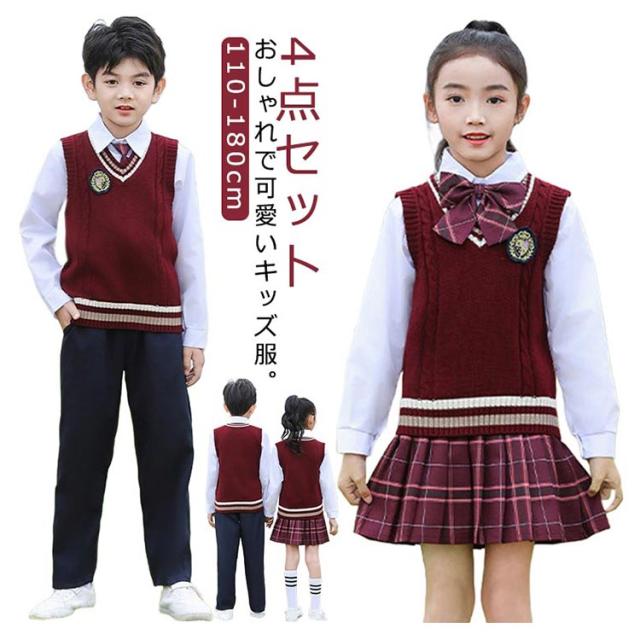 | サイズについての説明 | 【女の子4点セット】:ベスト、スカート、シャツ、リボン 【男の子4点セット】:ベスト、ズボン、シャツ、リボン 【110】参考身長95-105cm 【120】参考身長105-115cm 【130】参考身長115-125cm 【140】参考身長125-135cm 【150】参考身長135-155cm 【160】参考身長145-155cm 【170】参考身長155-165cm 【180】参考身長165-175cm |