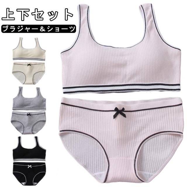 高校生 中学生 ショーツセット スポーツブラ ジュニアブラジャー 上下セット 学生 リブ ノンワイヤーブラ リボン ジュニア向け フィットネス シンプル ヨガ 運動 トレーニング ベストタイプ 子供 小学生 ショーツ