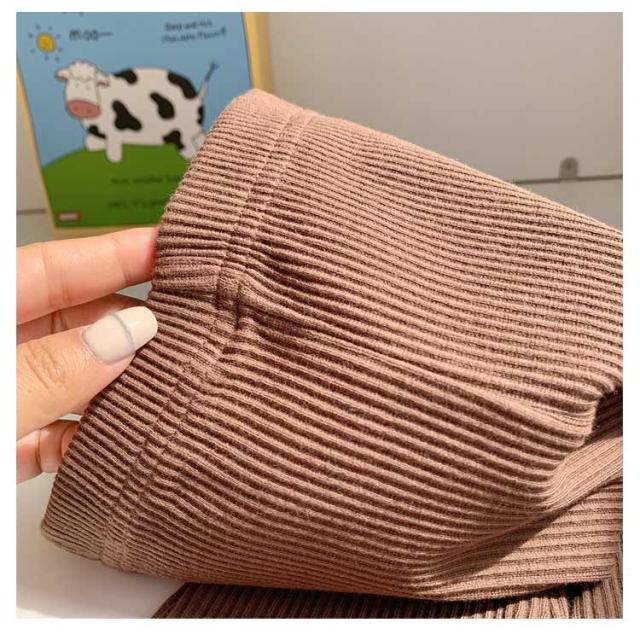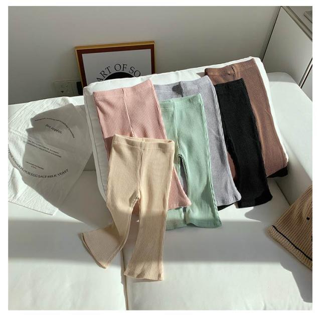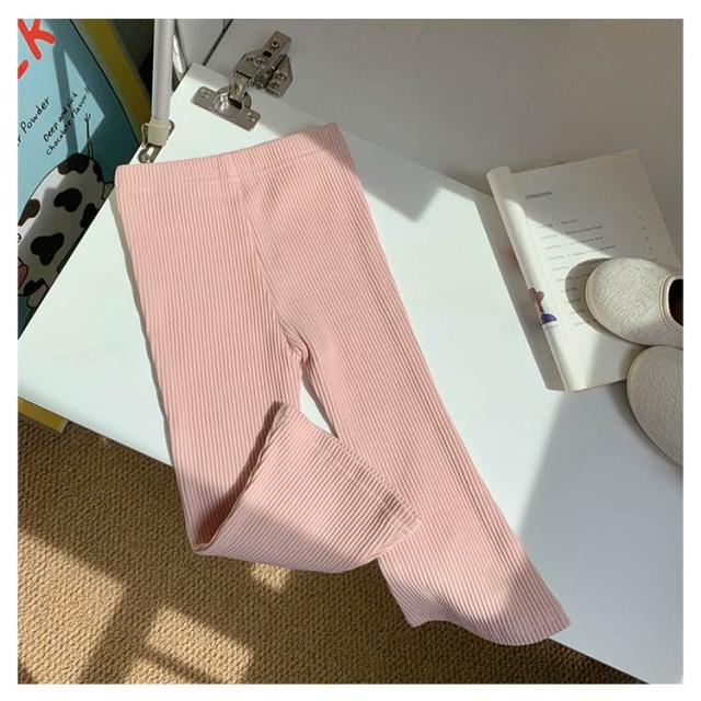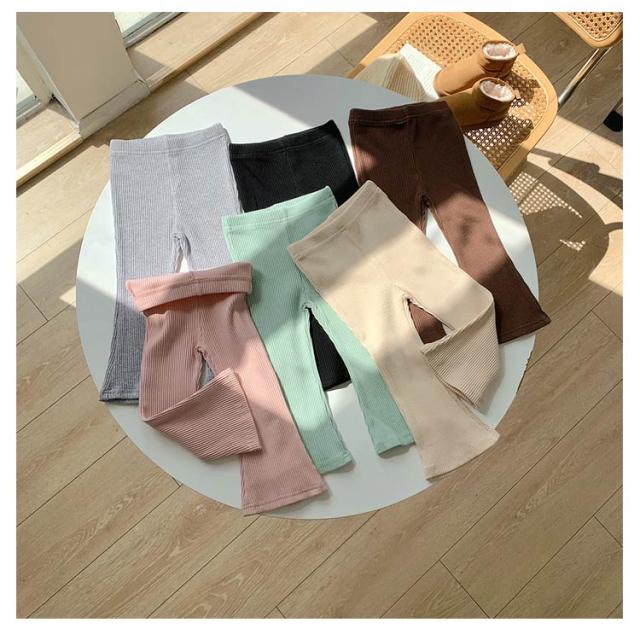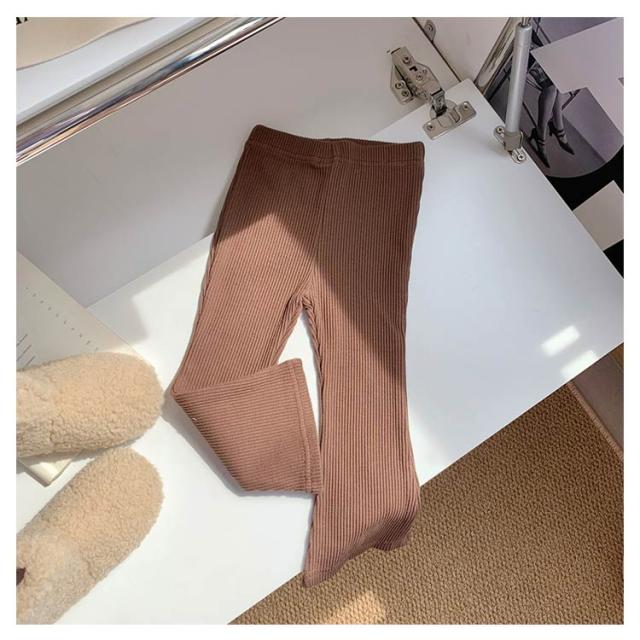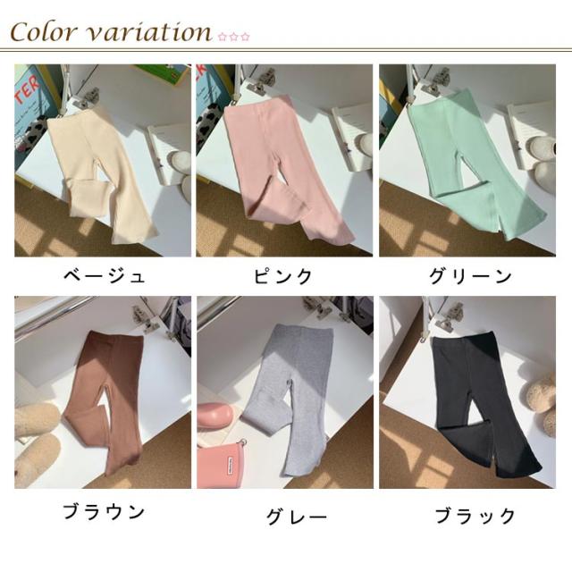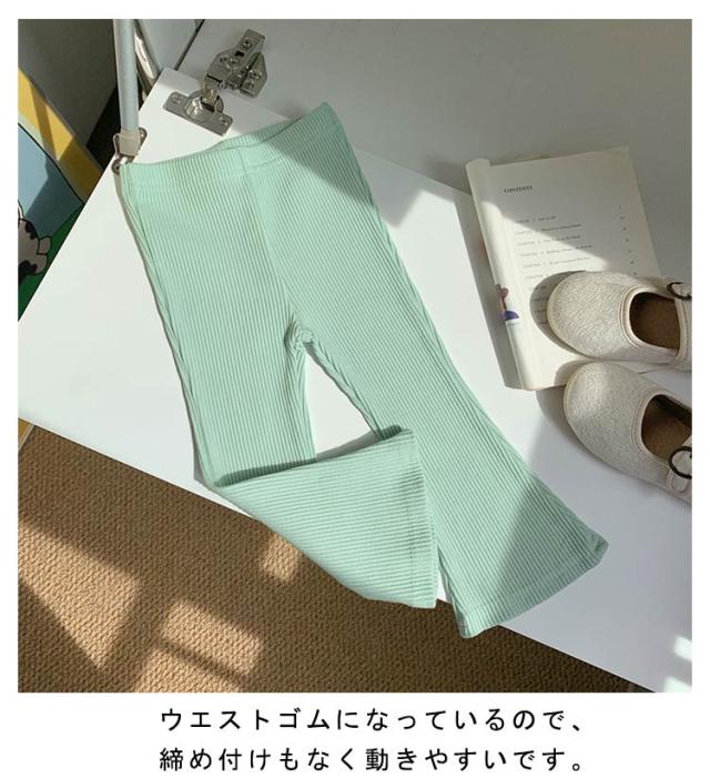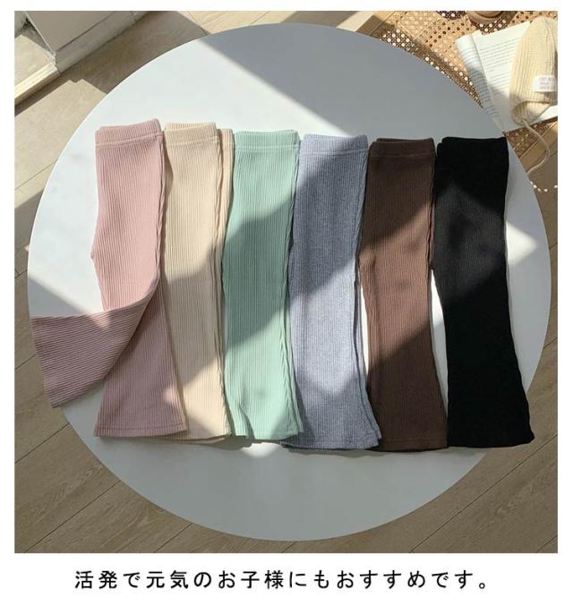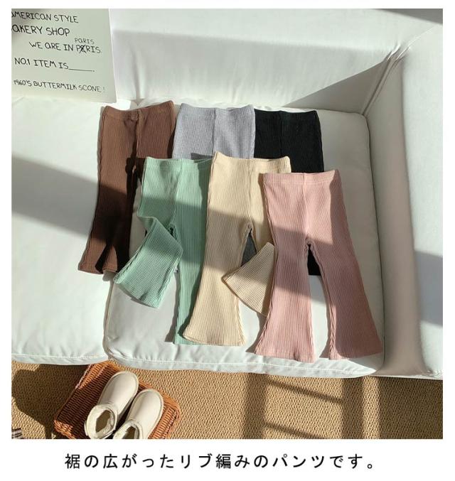 | 裾の広がったリブ編みのパンツです。 伸縮性抜群のリブニット生地を使用。 活発で元気のお子様にもおすすめです。 ウエストゴムになっているので、締め付けもなく動きやすいです。 | |