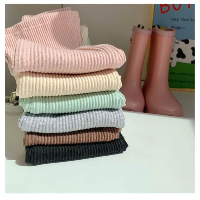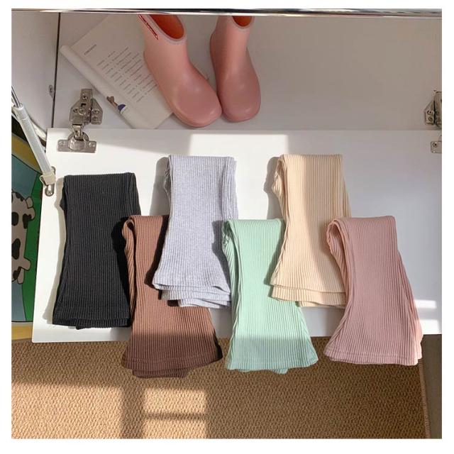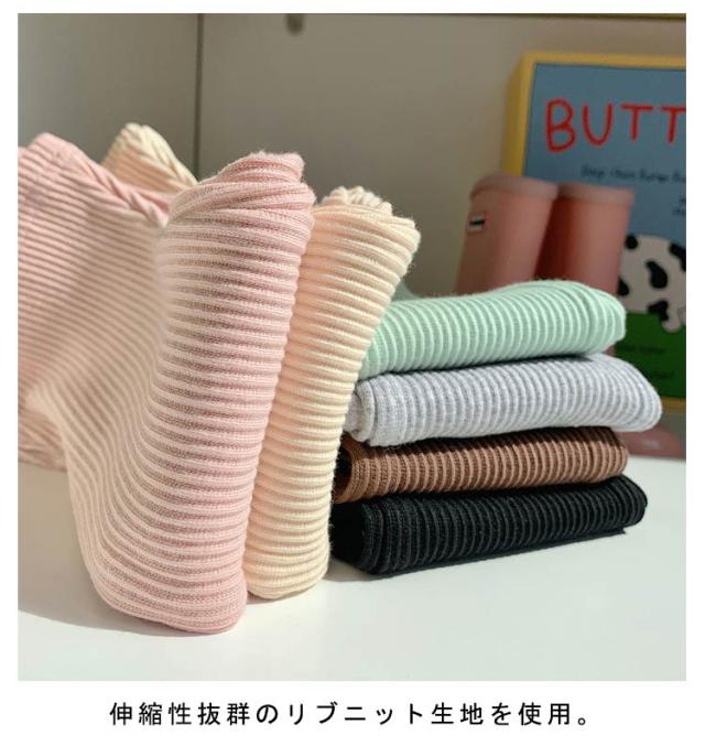 ストレッチ リブ レギンス パンツ 女の子 ロングパンツ フリル裾 カジュアル ベビー服 子供服 フリルパンツ インナーウエア ウエストゴム 無地 シンプル カジュアル ボトムス 水玉模様 チェック 73cm/80cm/90cm/100cm/110cm/120cm