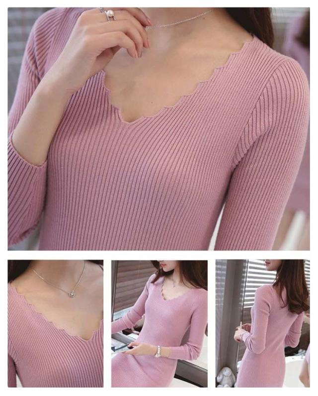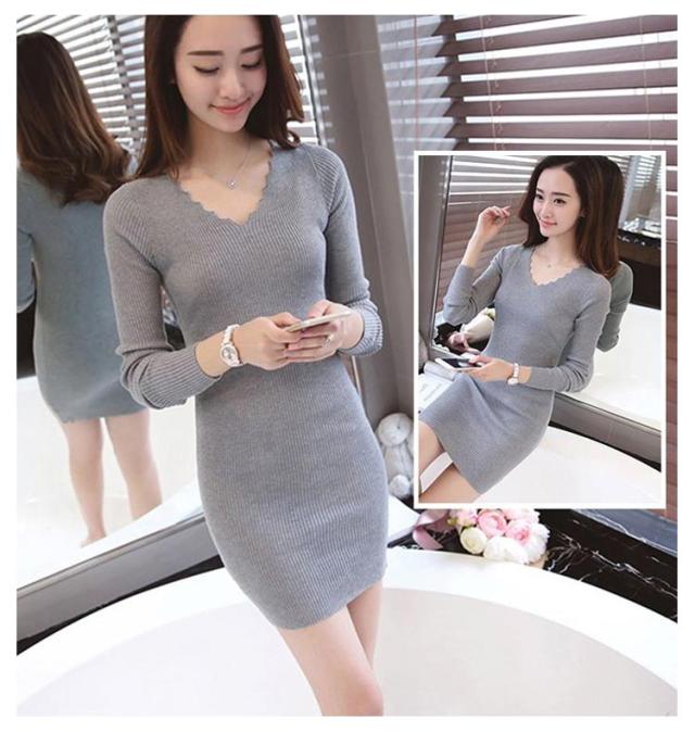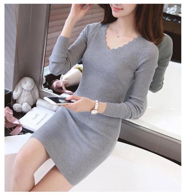 ニットワンピース 長袖 ミニワンピース レディース タイト ワンピース リブニット スカラップ スリム 長袖ワンピース 秋冬 ニット ワンピース チュニックワンピース ミニ丈 ショート丈 Vネック セクシー 送料無料