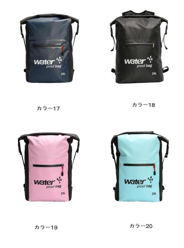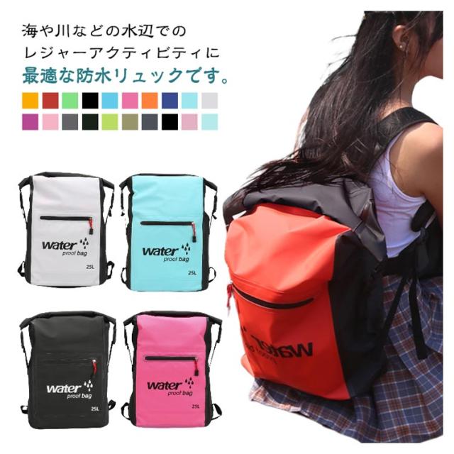 防水リュック 防水バッグ ドライバッグ プールバッグ リュックザック 25L 防災用 リュック 軽量 スクエアリュック 大型リュック 大容量 バックパック ウォータープルーフ アウトドア スイミング 海 スキー スノボ マリンスポーツ