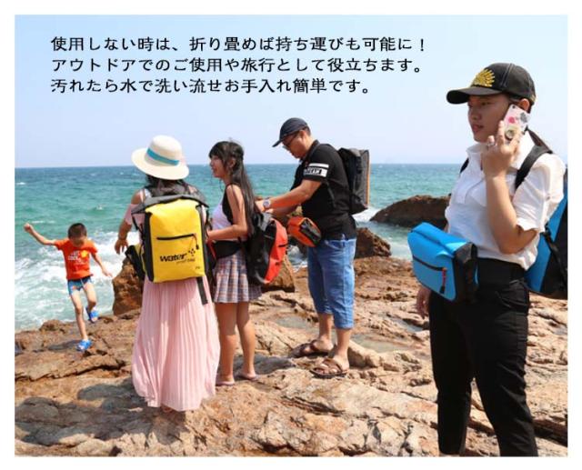 | 海や川などの水辺でのレジャーアクティビティに最適な防水リュックです。 密封性や防水性に優れ、肌触りの良い生地になりました。 開口部を数回折り畳んで、バックルを締めることで、水や砂、汚れから貴重品を守ります。 大きな開口部になっているので荷物の出し入れが簡単です。大容量の25Lサイズで水着、衣類はもちろん、タオルなども一緒に収納可能です。 使用しない時は、折り畳めば持ち運びも可能に!アウトドアでのご使用や旅行として役立ちます。汚れたら水で洗い流せお手入れ簡単です。 また水を入れて、バケツにすることも可能なので災害時の防災用品としても使用ができます。 | |